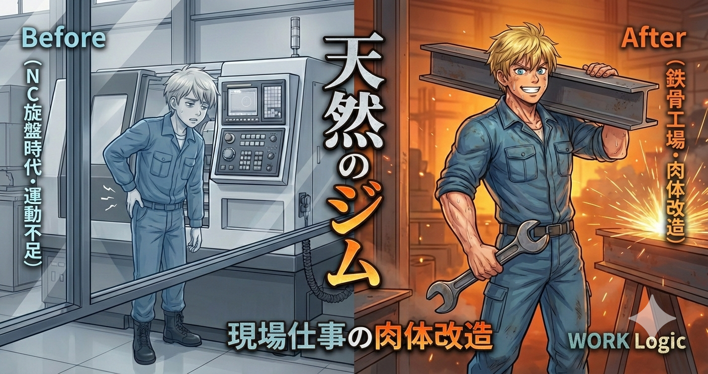 【肉体改造】NC旋盤から鉄骨鍛冶へ。現場仕事で1年働いたら、体型と筋肉はどう変わった?(天然のジム説)